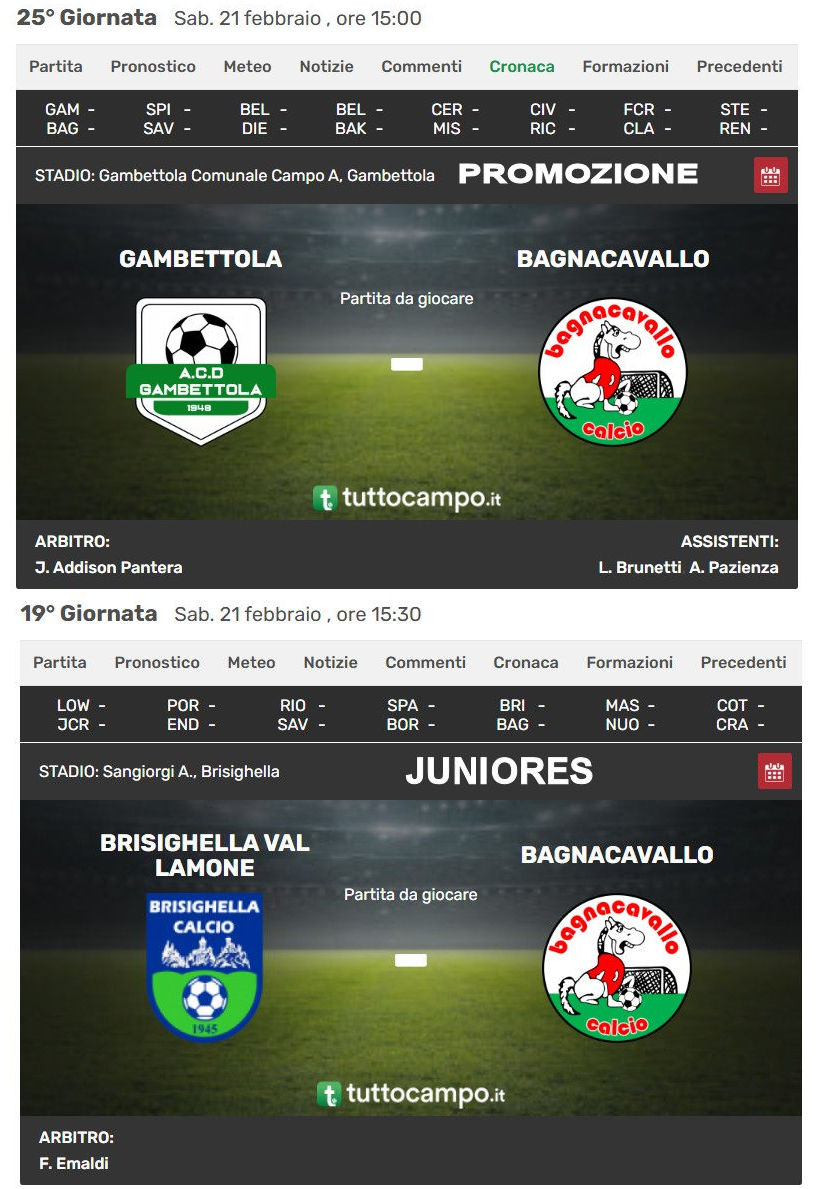 Partite Sabato 21 Febbraio
