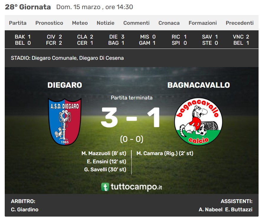 Diegaro - Bagnacavallo 3-1