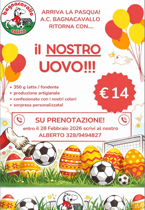 ARRIVA LA PASQUA… e torna il nostro UOVO firmato A.C. BAGNACAVALLO! ⚽🐣